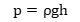,其中,p为压强,ρ为密度,g为重力加速度,h为水深。
