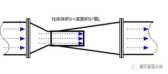 这时候,用什么容器,都是扯淡。那么,接下来就要谈到第二个方法:既然流量是针对某一个过流断面而言的,那么在管网中(或者任何什么地方),可以把流经这个断面的水想象成一个柱体: