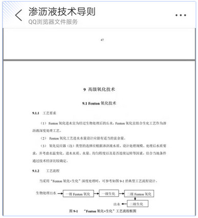 渗滤液处理技术导则中第9小节有关于高级氧化技术的解释,貌似小编看到的这项技术就是这个原型,人家现场技术保密,说是特殊药剂,小编智能理解到这里。