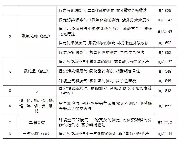 三、规范性引用文件增加“HJ 692 固定污染源废气氮氧化物的测定非分散红外吸收法,HJ 916 环境二噁英类监测技术规范”;“HJ 548 固定污染源排气氯化氢的测定硝酸银容量法(暂行)”修改定离子色谱法”;“HJ/T 57 固定污染源排气中二氧化硫的测定定电位电解法”修改为“HJ 57 固定污染源废气二氧化硫的测定定电位电解法”;“HJ/T 75 固定污染源烟气排放连续监测系统技术规范(试行)”修改为“HJ75固定污染源烟气(SO2、NOX、颗粒物)排放连续监测技术规范”。