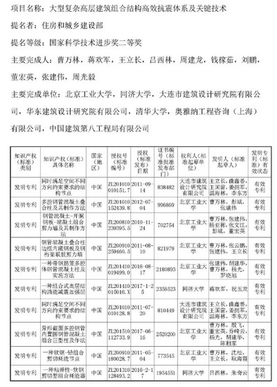 7.大型复杂高层建筑组合结构高效抗震体系及关键技术项目公示材料