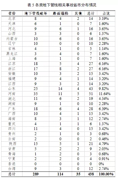 表1 全国地下管线相关事故总体情况