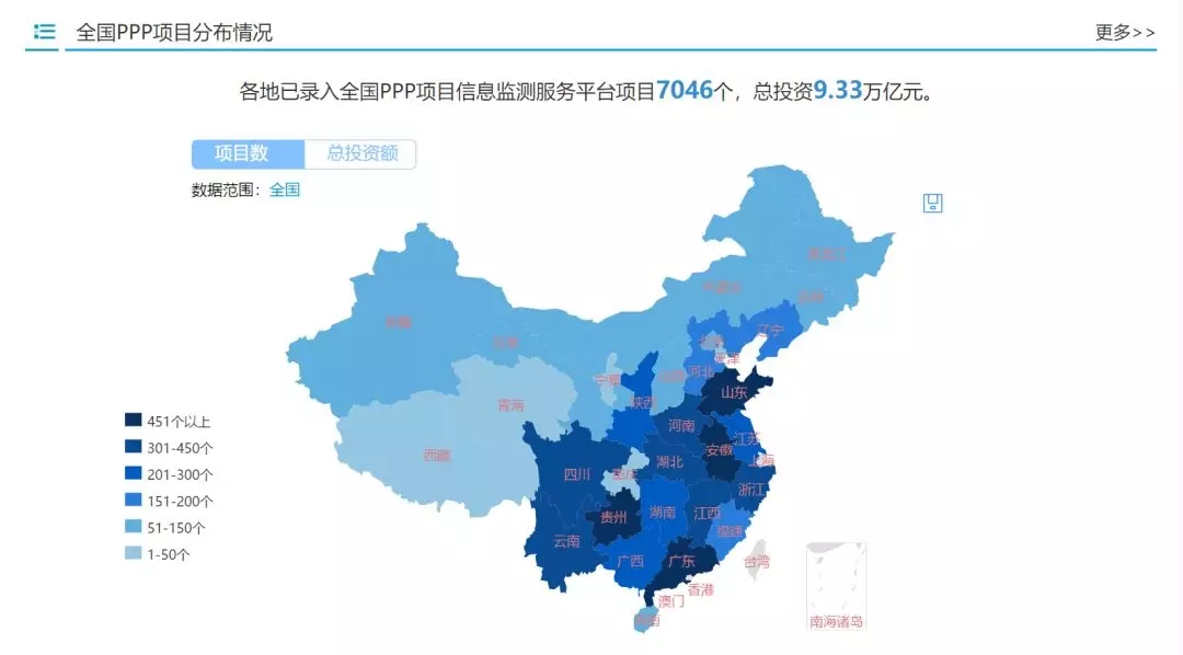 全国PPP项目信息监测服务平台包括中央平台和地方平台两个部分。中央平台可反映PPP项目地区分布、主要行业、所处阶段和履行“审核备”手续等情况,并提供各省重点推进PPP项目查询链接。地方平台可以查看该地区重点推进PPP项目具体信息。