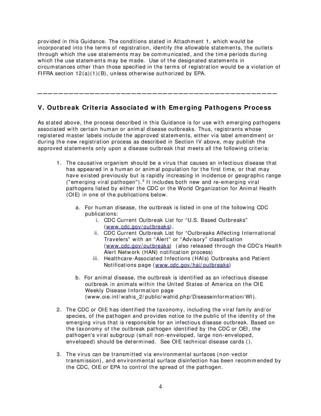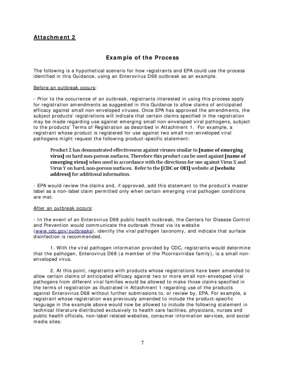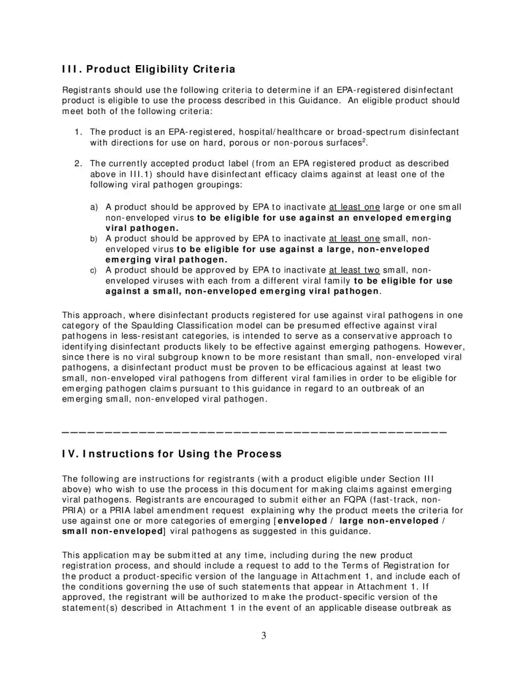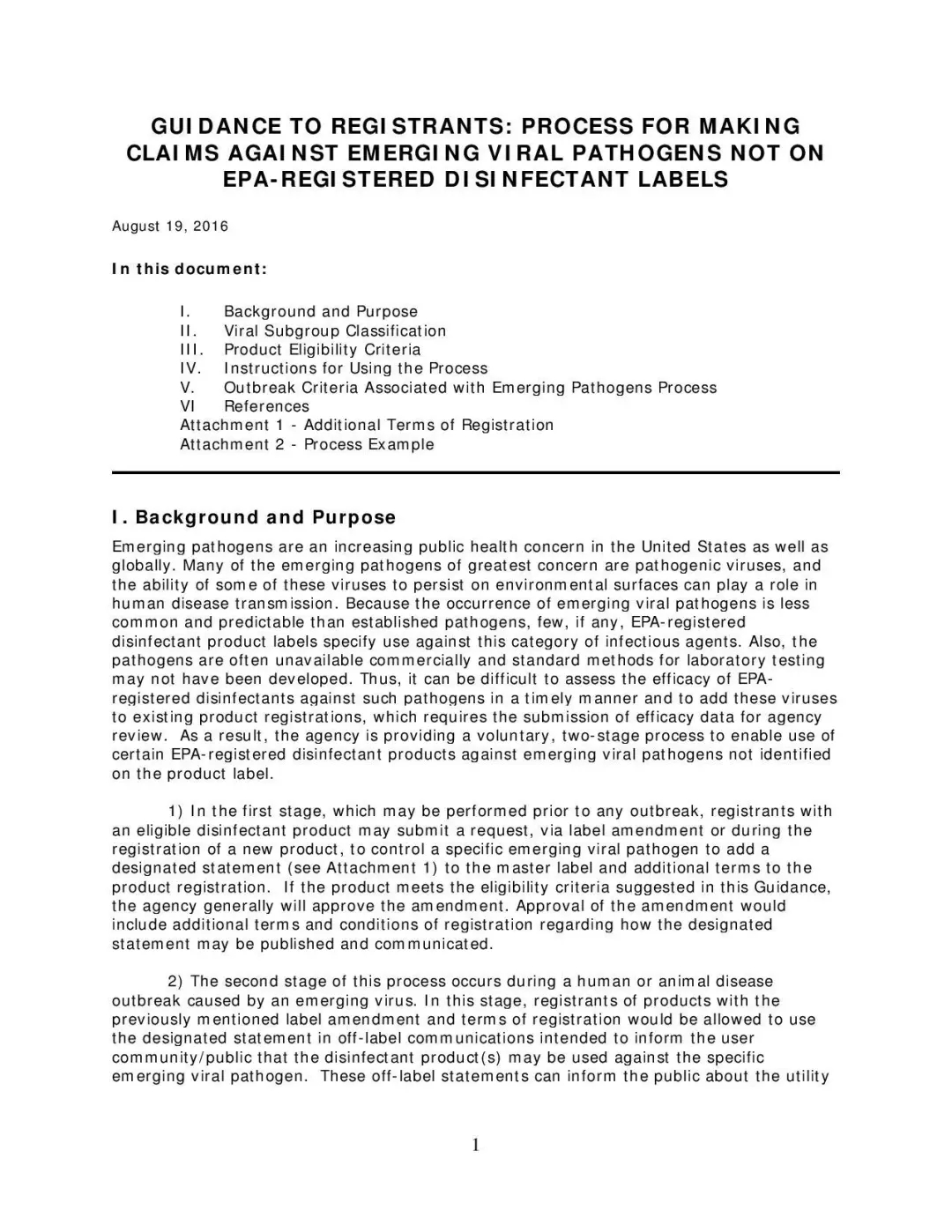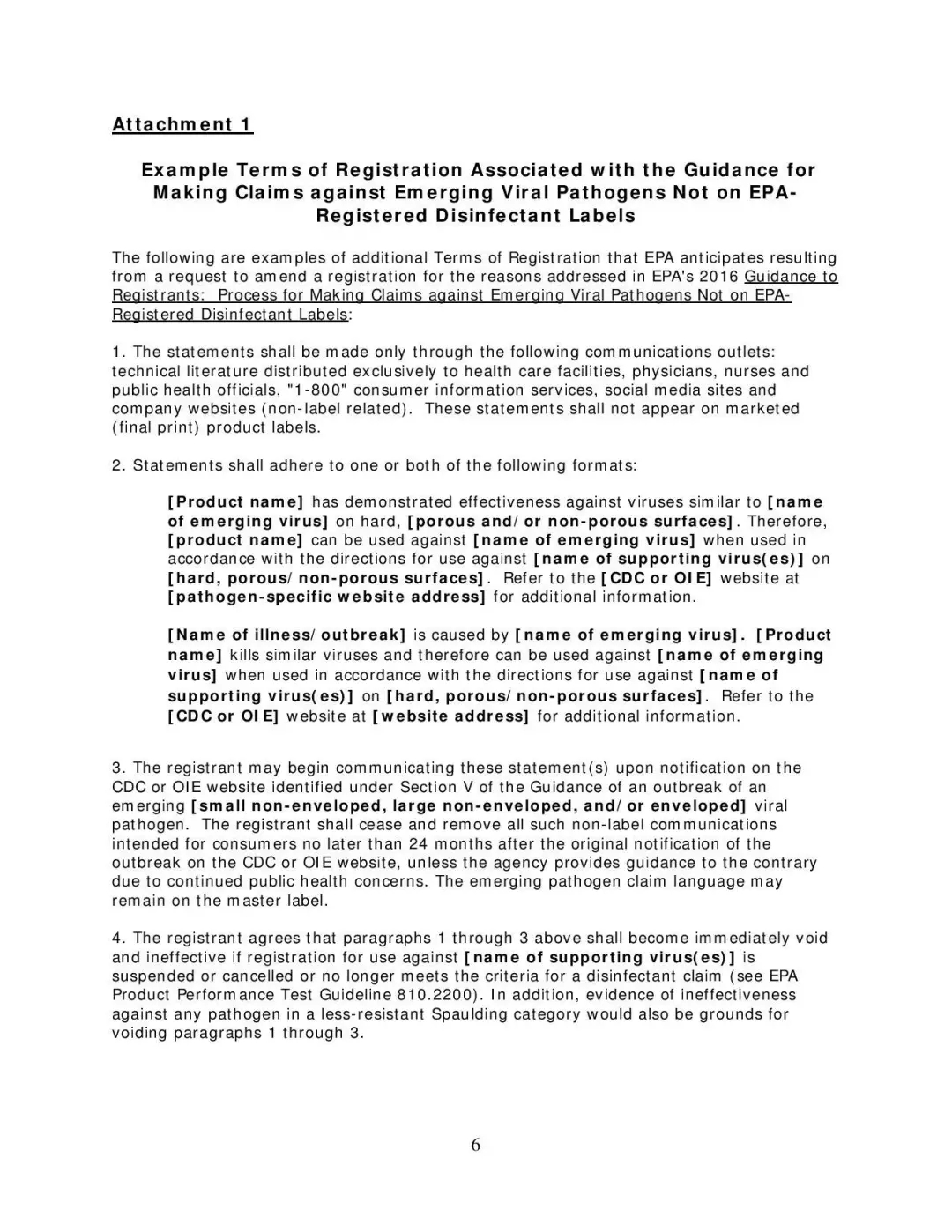 该项目为注册人提供了一般性指导,并解决了公众对如何识别、选择用于对抗新病毒的有效消毒剂产品的关注。该项目的指南文件允许注册人对其产品的抗此类病原体的功效作出有限的声明。这个自愿过程分两个阶段,涉及产品标签修改和修改注册条款,仅适用于新出现的病毒。当然,需要在疾控中心确定了新病原体的类型、并建议进行环境表面消毒以阻止传播后,此项目的内容才能发挥功效。