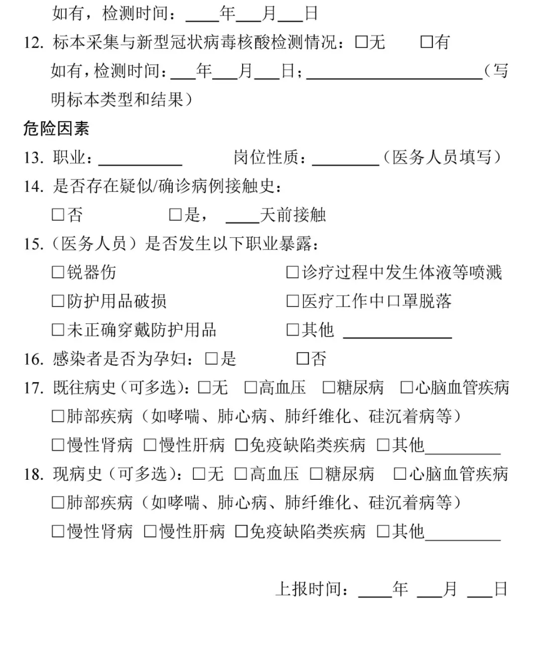 ③开展病例个案调查,获得病例的发病经过、诊治过程等详细信息;填写《新冠肺炎医院感染病例上报表》。