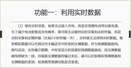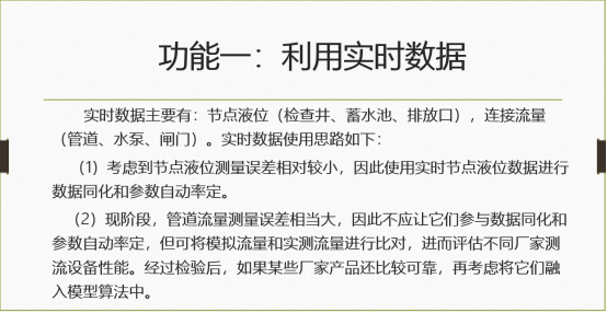 现在有很多设备厂商(国内、国外的都有),能够提供在线监测设备,业主单位很多时候也搞不清楚哪家产品更好。因为在购买之前厂商肯定都说自己设备很好,但是实际用起来可能就会有各种问题。我们可以用实时模型的模拟数据,和在线设备的监测数据进行比对,对供应商的设备进行比武,看看哪个厂家设备更可靠。这是实时数据的一个应用场景。