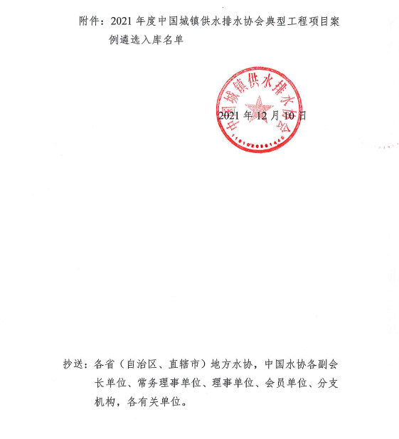 关于2021年度中国城镇供水排水协会典型工程项目案例遴选入库名单的公示