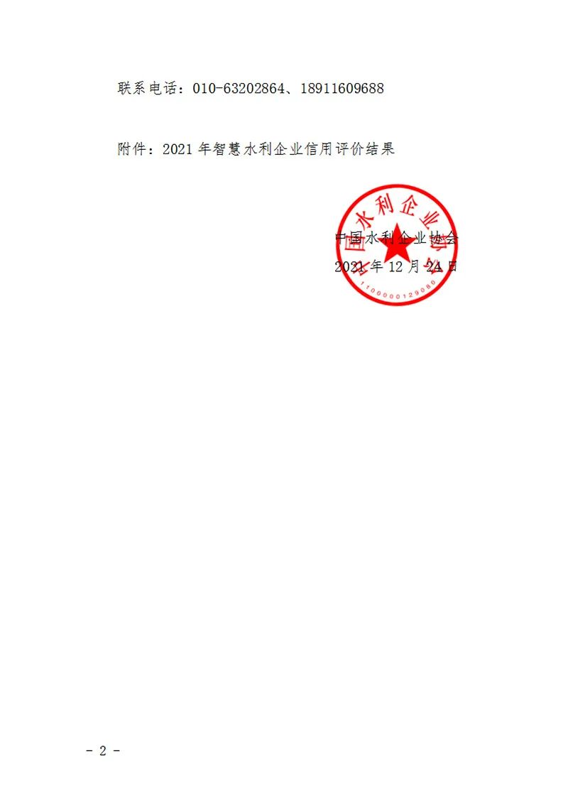 2021年智慧水利企业信用评价结果公示