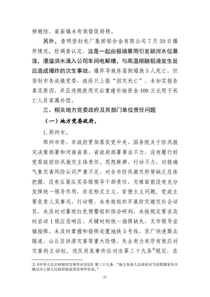 全文 | 河南郑州“7·20”特大暴雨灾害调查报告