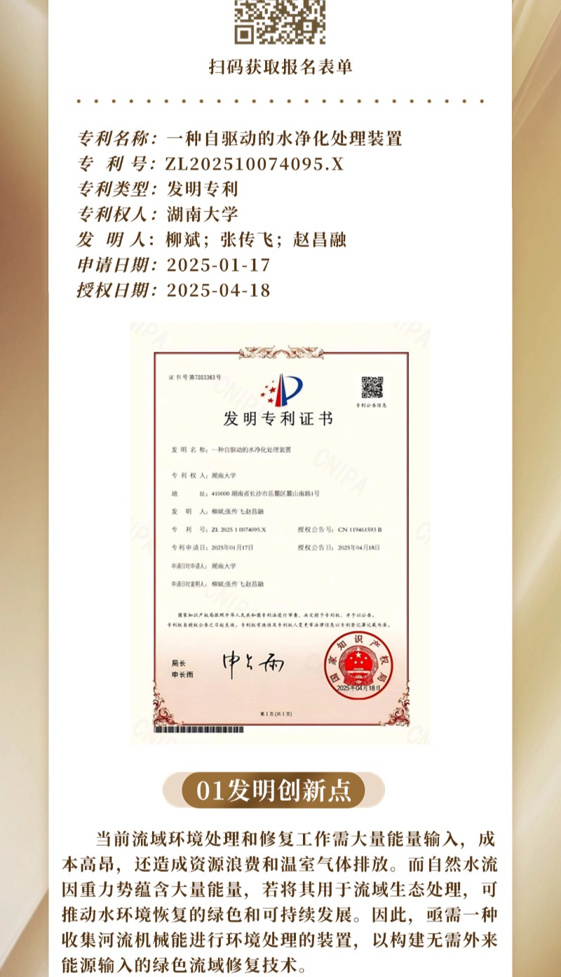 “九通杯”专利展播|柳斌,等:一种自驱动的水净化处理装置