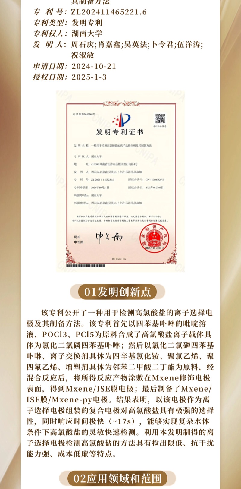 “九通杯”专利展播|周石庆,等:一种用于检测高氯酸盐的离子选择电极及其制备方法