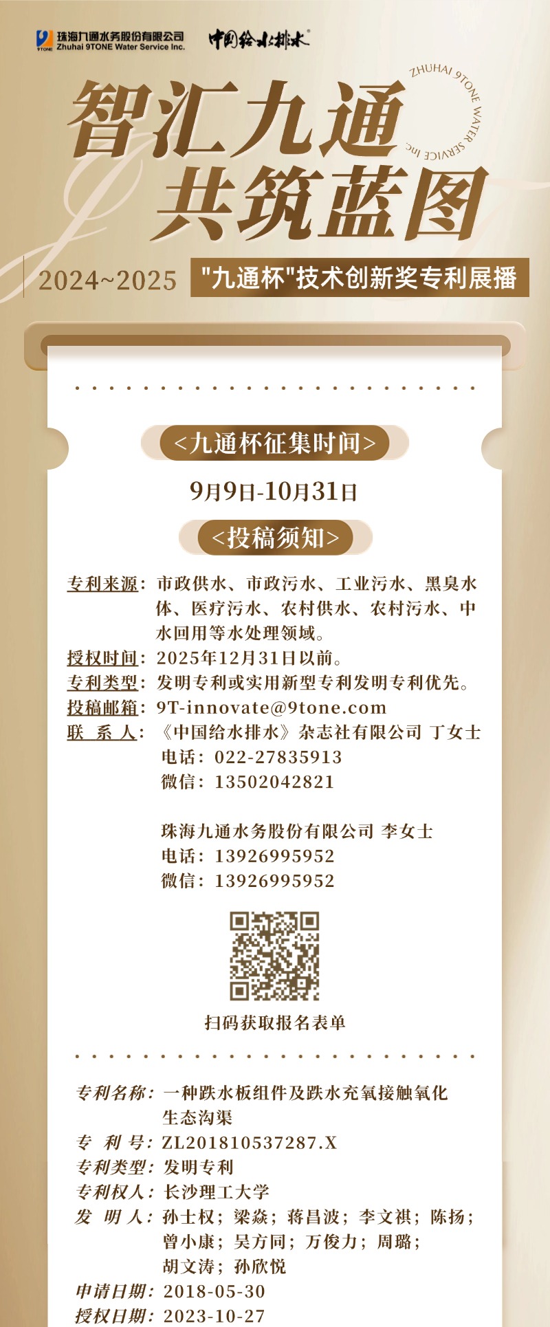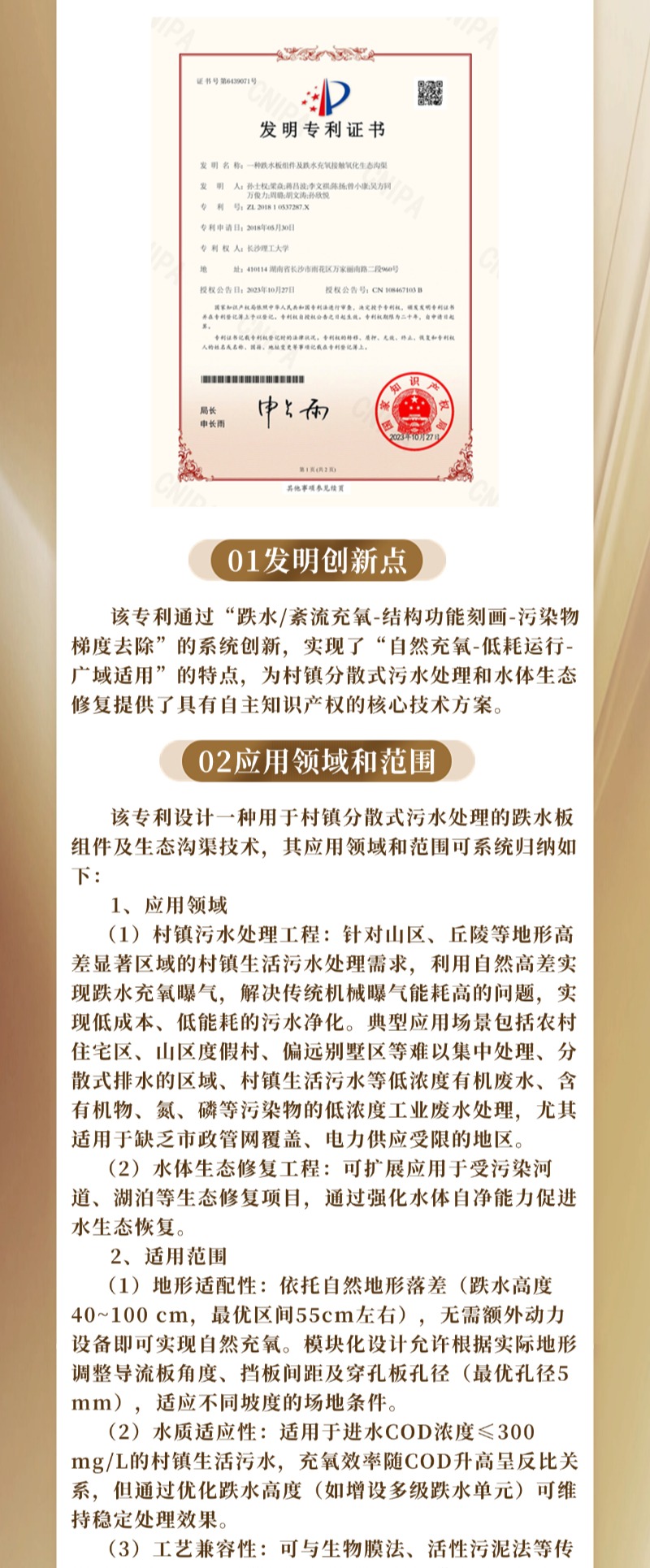 “九通杯”专利展播|孙士权,等:一种跌水板组件及跌水充氧接触氧化生态沟渠