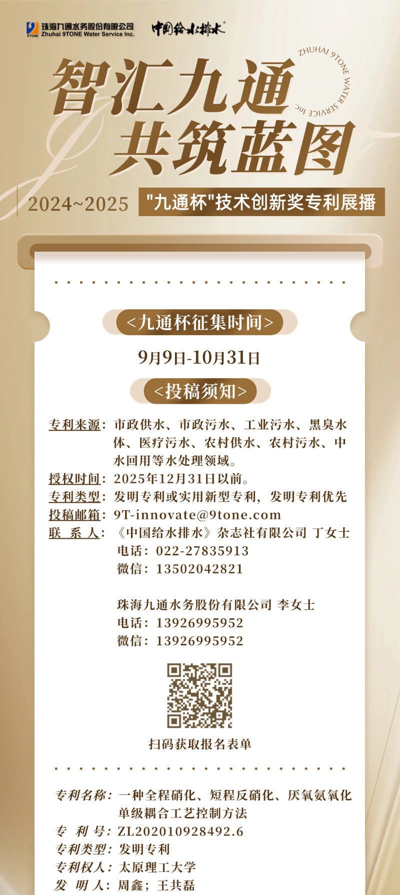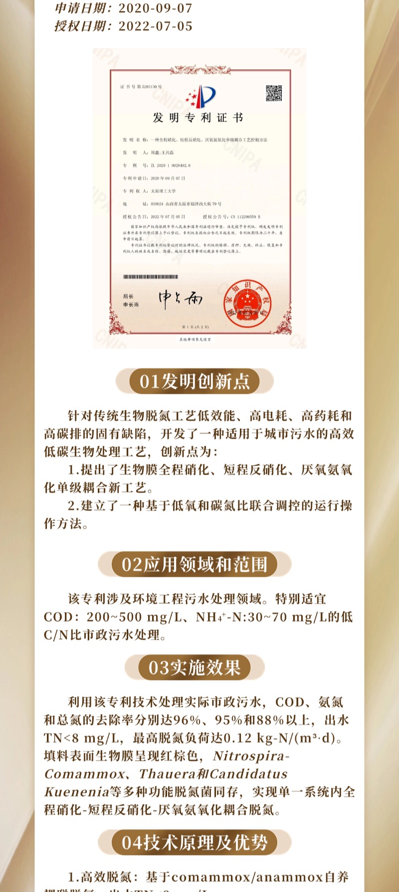 “九通杯”专利展播|周鑫,等:一种全程硝化、短程反硝化、厌氧氨氧化单级耦合工艺控制方法