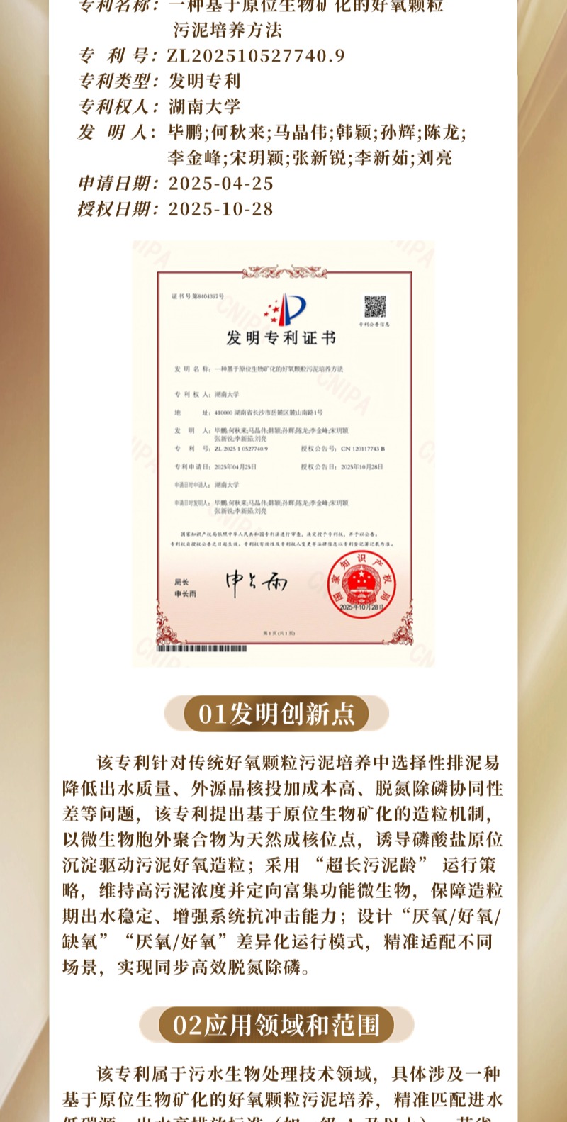 “九通杯”专利展播|何秋来,等:一种基于原位生物矿化的好氧颗粒污泥培养方法