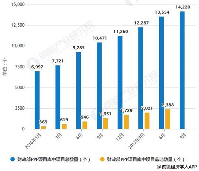 2016-2017年9月财政部PPP项目库中项目个数、金额统计情况