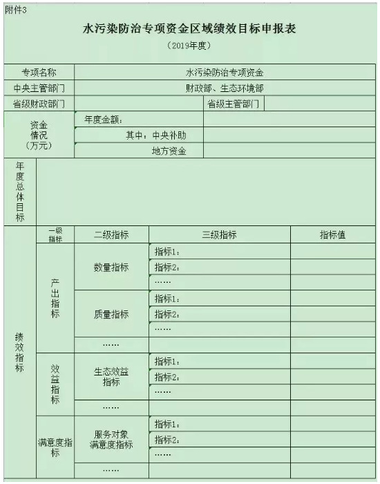 六、为进一步加强预算绩效管理,请按照《中共中央 国务院关于全面实施预算绩效管理的意见》(中发〔2018〕34号)的要求,完善绩效目标管理,科学填报《水污染防治资金区域绩效目标申报表》(附件3),并在收到本通知之日起30日内报我部和生态环境部备案,做好绩效监控和绩效评价,确保财政资金安全有效。请参照中央做法,将你省(自治区、直辖市)确定后的绩效目标及时对下分解,做好预算绩效管理工作。《水污染防治资金区域绩效目标申报表》和分解下达(或审核通过的市县)绩效目标要同时抄送财政部各地监管局。