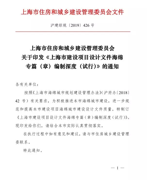 继2019年4月10日住房与城乡建设部正式发布《海绵城市建设评价标准》后,各试点城市也在纷纷梳理和发布适应各地当地特色的的具体建设指南和导则,今天我们为大家发布的是《上海市建设项目设计文件海绵专篇(章)编制深度(试行)》。