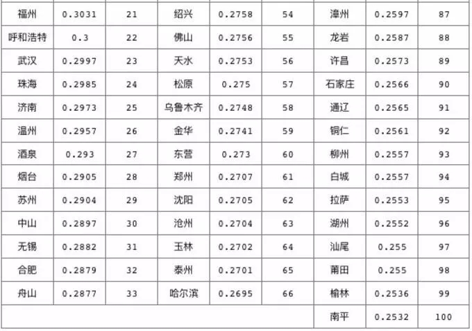 位列前20的城市依次是:北京、深圳、三亚、广州、鄂尔多斯、西安、厦门、长沙、青岛、上海、东莞、海口、南宁、庆阳、威海、南京、杭州、梅州、安康和天津。今年的报告共对290个城市的绿色竞争力进行了科学测算和评估。
