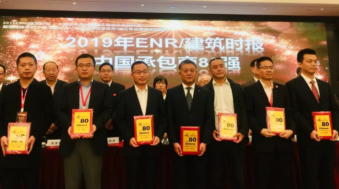 11月8日,由美国《工程新闻记录》(ENR)和中国《建筑时报》共同发布的2019年度“中国承包商80强和工程设计企业60强”颁奖典礼在杭州举行。中国建筑股份有限公司等企业入围“中国承包商80强”榜单,中国石化工程建设有限公司等企业入围“工程设计企业60强”榜单。住建部建筑市场监管司原司长、中国建筑业协会副会长吴慧娟,中国勘察设计协会副秘书长汪祖进,建筑时报总编辑余凯凯出席颁奖典礼并致辞;原建设部总工程师、瑞典皇家工程科学院外籍院士许溶烈,浙江省建筑业协会副会长兼秘书长蒋兆康等领导出席了颁奖典礼。