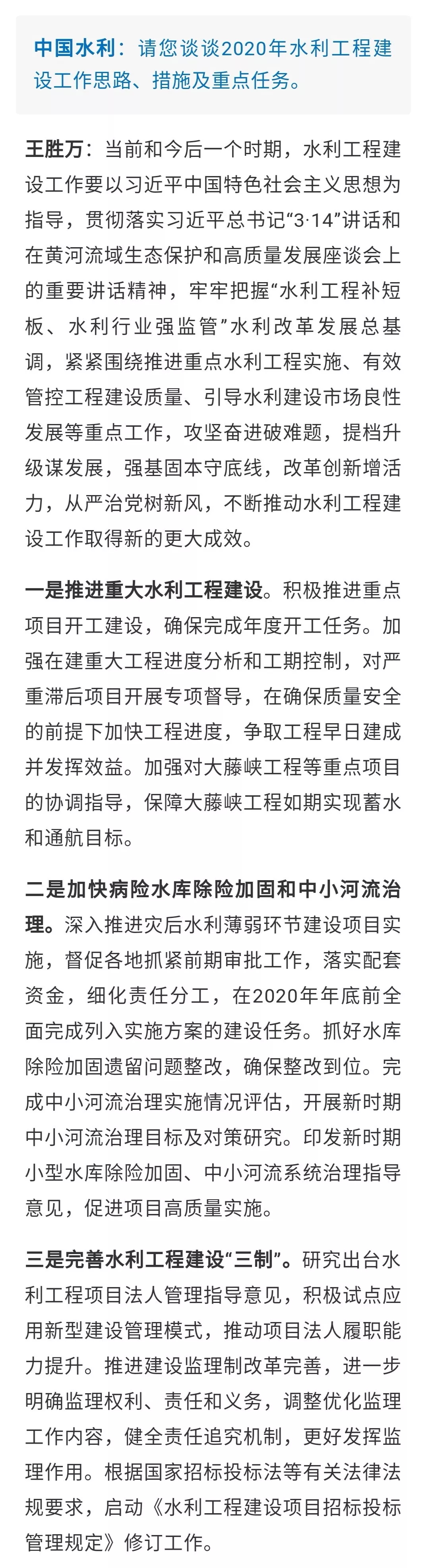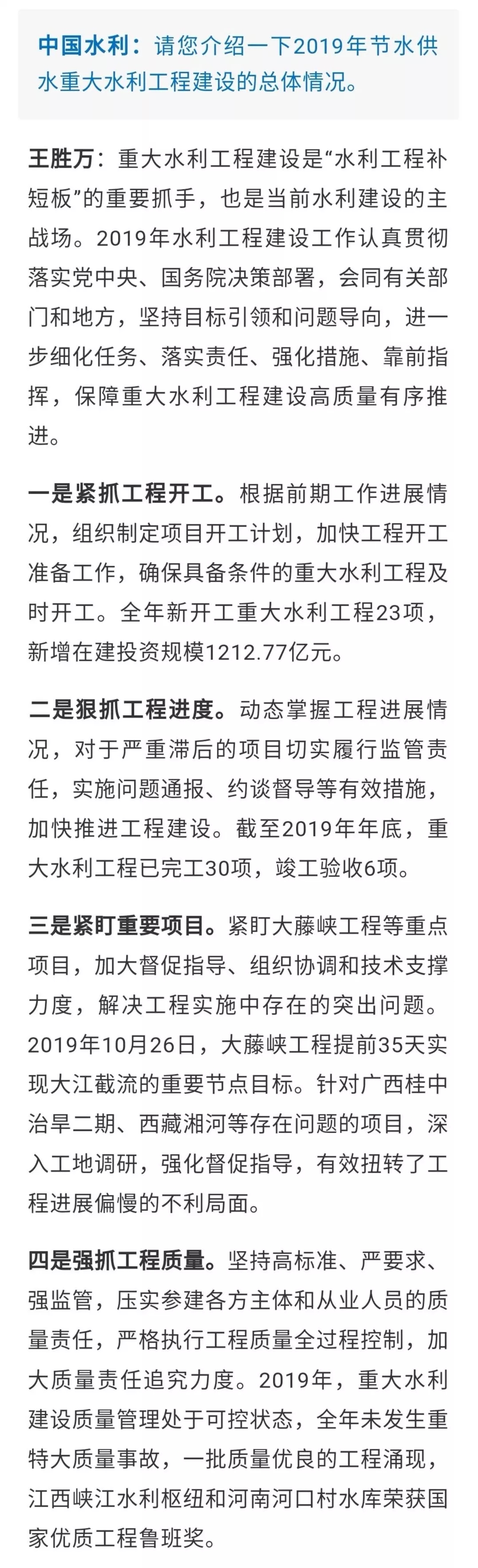 水利部建设司司长王胜万:坚持目标引领和问题导向 水利建设“补短板、强监管”落地见效