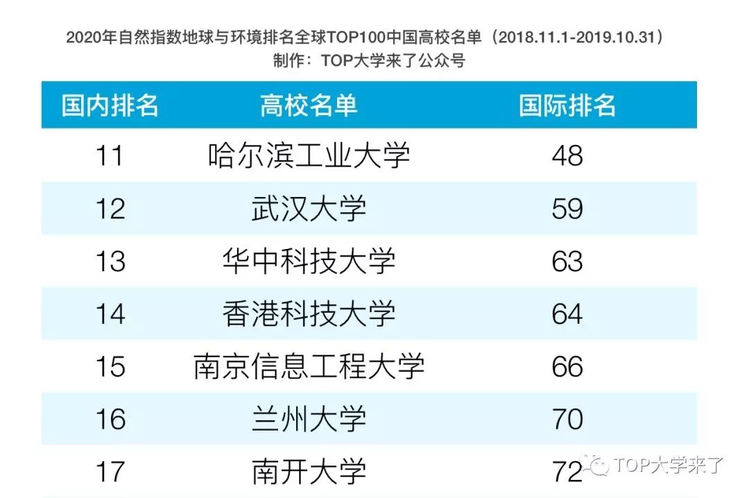 “TOP大学来了”小编统计来看,在全球TOP100的中国高校榜单中,中国地质大学、中国科学院大学、南京信息工程大学表现优异。其中,中国地质大学位列全球第4/国内第2,是榜单中排名最高的211工程/一流学科建设高校,中国科学院大学位列全球第8/国内第4,南京信息工程大学位列全球第66/国内第15。