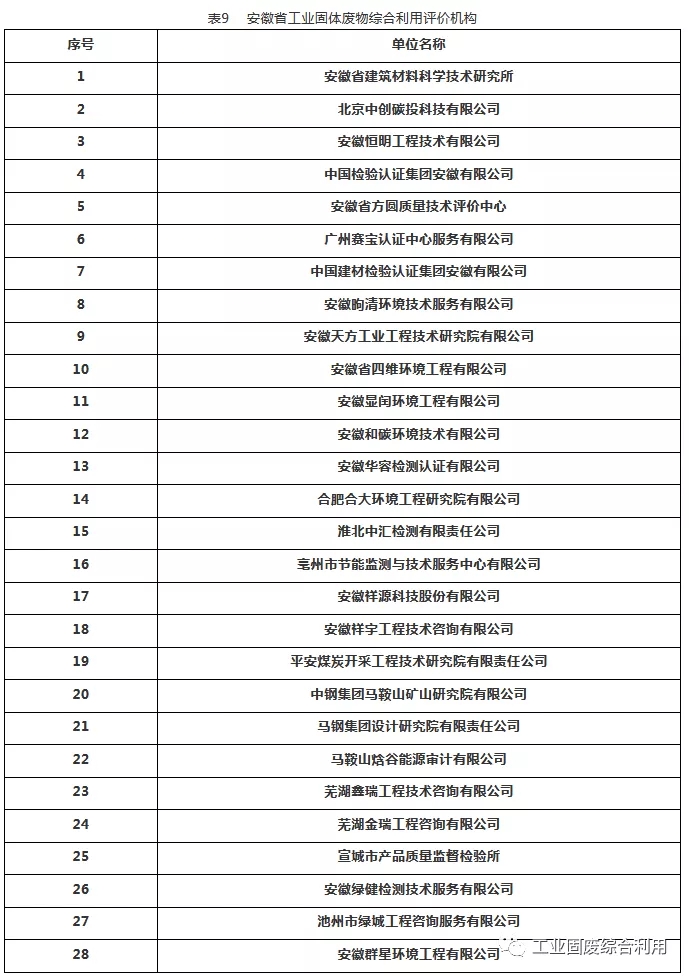 以下是现已公布工业固体废物综合利用评价机构的9省份的第三方评价机构名单: