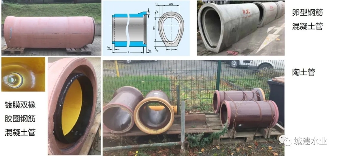 随想一:源头绿色不就是海绵吗? 2013年12月12日, 习近平总书记在《中央城镇化工作会议》的讲话:“提升城市排水系统时要优先考虑把有限的雨水留下来, 优先考虑更多利用自然力量排水, 建设自然存积、自然 渗透、自然净化的”海绵城市”。 2014年3月14日, 习近平总书记在《中央财经领导小组第五次会议上的讲话》:“城市规划和建设要坚决纠正”重地上, 轻地下“, ”重高楼, 轻绿色“的做法, 既要注重地下管网建 设, 也要自觉降低开发强度, 保留和恢复适当比例的生态空间, 建设”海绵家园“、”海绵城市”。 ——“海绵城市”是理念, 其不能够当做工程做, 但是很多工程可以“海绵化”, 这就是绿色。 ——“绿化”不一定是绿色, 做对的“海绵”就是绿色。 需要知行合一 随想二:排水管道工程该怎么做? 不同规格混凝土、钢筋混凝土管的橡胶圈连接方式 考察德国一污水管道工地: 1、采用d400陶土管(3米节,每节约300欧元),注意插口橡胶圈是出厂前已被固定在上面了。 2、与用户接口是直接链接的,德国允许直接连接;在现场用专门工具在管上开洞,并用专门连接件做好密封。 3、敷设好若干长度后采用“气密法”进行严密性检查,合格则开始回填。 4、回填采用“液态回填材料”;不需振动捣实,就可达到回填要求;没有尘土、不要黄沙、没有噪音、原土利用、基础与管一体,且沟槽可很窄。 5、支座上有一用软木“填塞”的缝,这就是用于管道安装时高程误差的调节。 6、为了防止地下水把木支座泡胀,影响管道高程,在使用前必须先把支座泡24小时。 7、综合造价800欧元/米。 ——便宜乎?我们(2.5m敷土)同口径钢筋混凝土管2500元/m;球墨铸铁管2850元/m。 如何做好排水管道的建设,其原则可以用6句话来概括: ——高质量排水管道建设“42字真经”: •管材质量要牢靠——管材现场一定要抽检,特别是环柔度(挠曲性) •管道基础要托底——基础在承口处做槽,即托底,又限位 •管道接口要到位——插口末端画条线;先做井,后装管 •沟槽回填要密实——原土回填,重视密实度。实现“管土一体” •严密检查要保证——提倡闭气试验,雨水管也要做 •窨井质量要重视——窨井井体要与管道材质一致,也不能漏水 高质量管道不是敷设出来的,是安装出来的! 压力空气垫倒虹管——对压力空气都是密封的,还不密封水 科学研究:——大胆创新;——允许失败。 工程建设:——百年大计;——质量第一。
