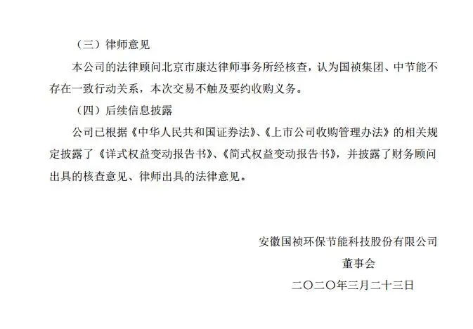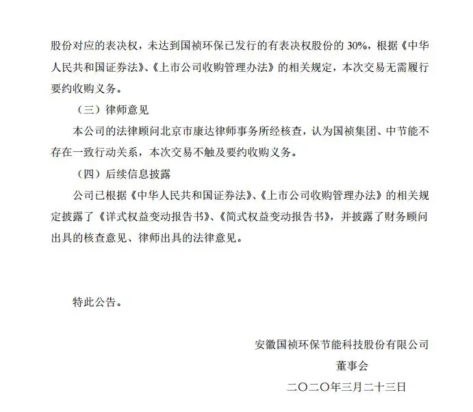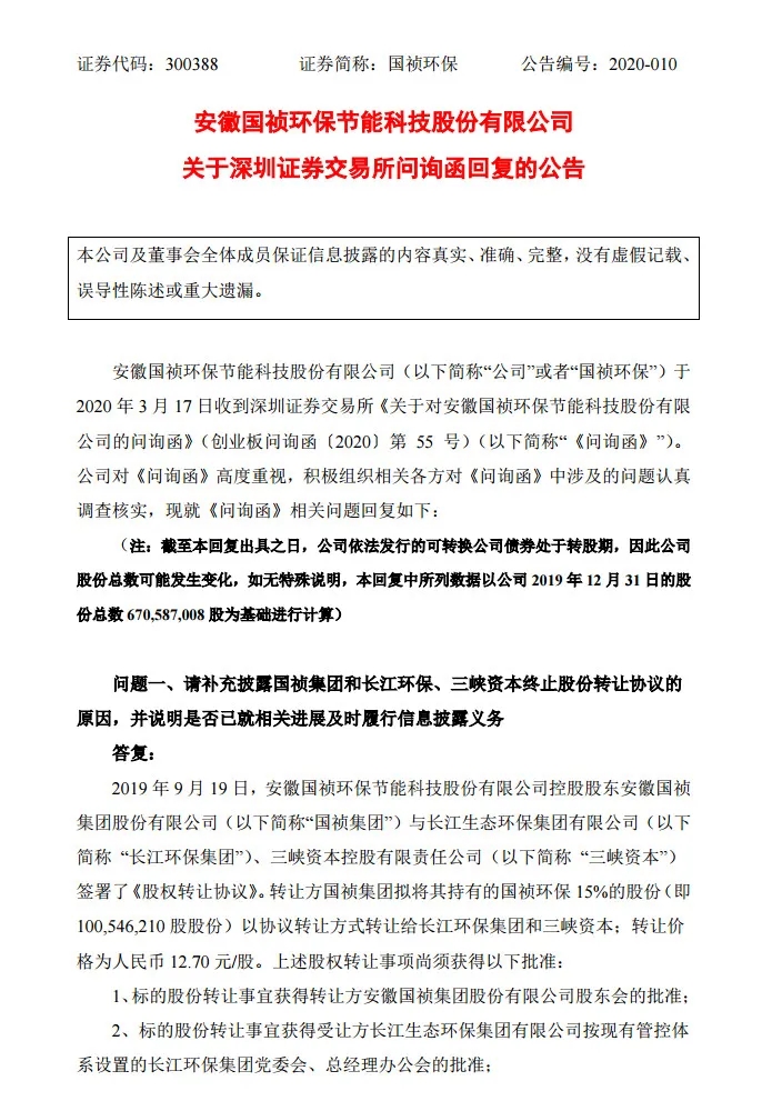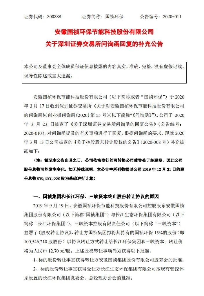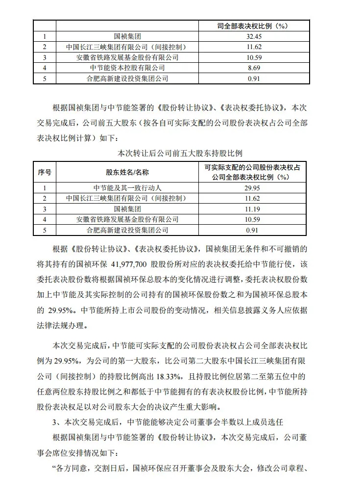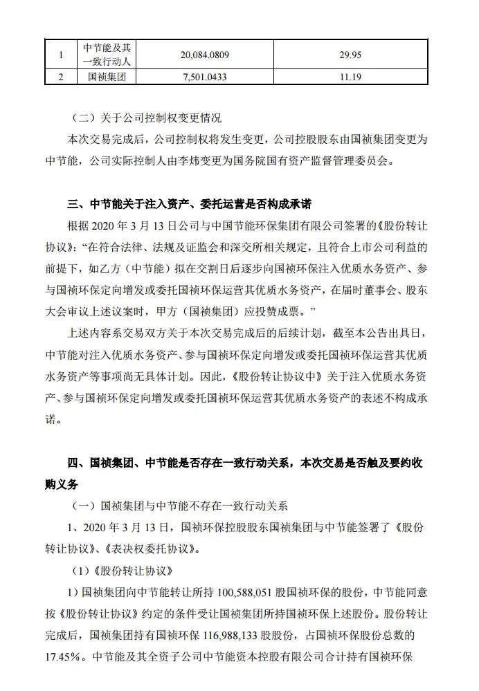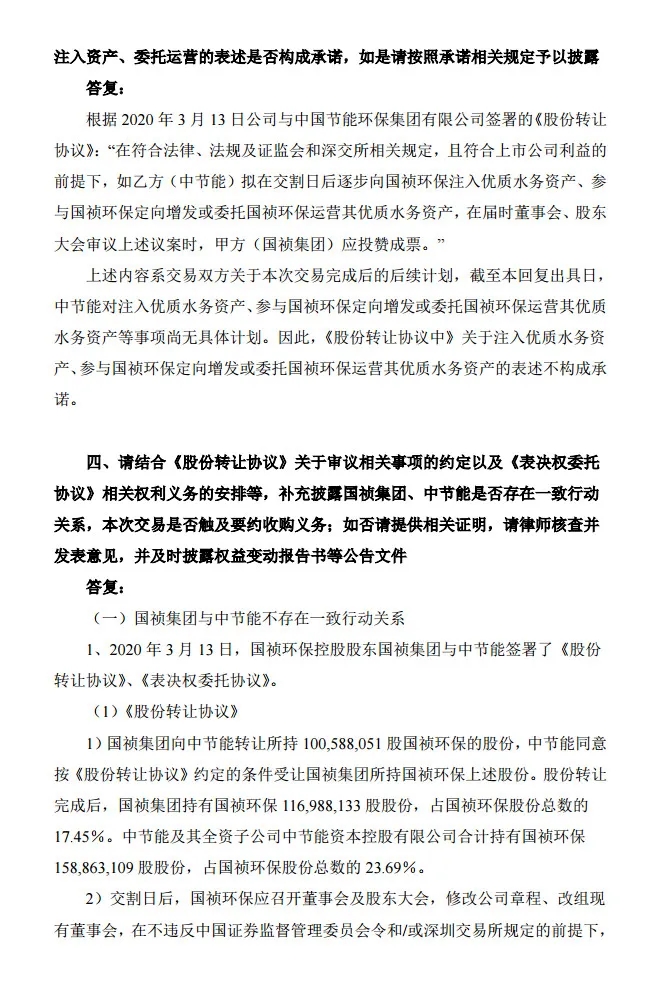 3月23日晚间,国祯环保回复交易所问询函件,明确股权转让及表决权委托完成后,中节能将成为公司控股股东,国务院国资委将成为实际控制人。