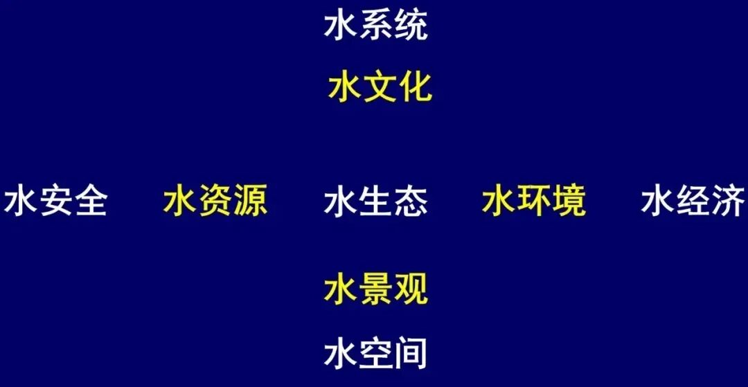 下面是我的“水系统-水生态-水空间 结构图”,横向“水安全-水资源-水生态-水环境-水经济”;水生态上面是水文化,在水生态和水空间之间是水景观;水空间是水系统治理的落脚点。