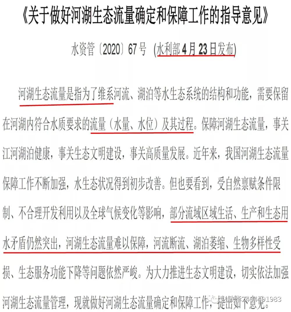 今年4月23日,水利部发布《河湖生态流量的指导意见》