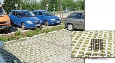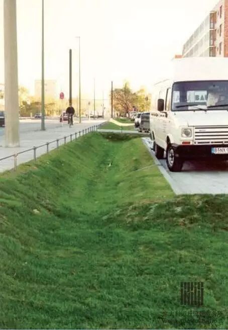 德国城市80%路面能够透水。不同的区域会铺不同的透水路面。人行道、步行街、自行车道、郊区道路等受压不大的地方采用透水性地砖,这种砖本身可透水,砖与砖之间采用了透水性填充材料拼接。自行车存放地和停车场的地面,选择有孔的混凝土砖,并在砖孔中用土填充,这样有利于杂草生长,从而使地面的40%具有绿化功能。考虑到居民区、公园和街头广场更需要绿化和美化,因此这些地方选用实心砖铺路,但砖与砖之间会留出空隙;居民区、校园和公园等步行道路由于路面使用率高,用细碎石或细鹅卵石铺路会更合适。此外,还在道路边修建了引流暴雨的排沟壑,直接连通市政排水管道。