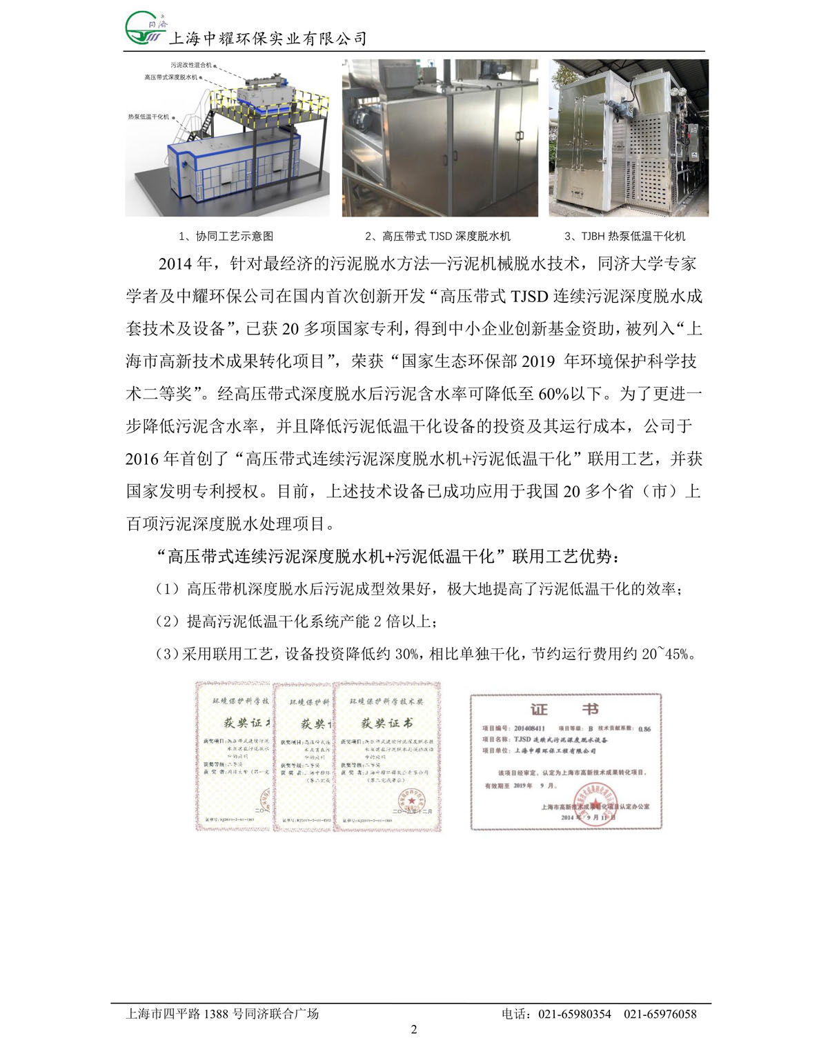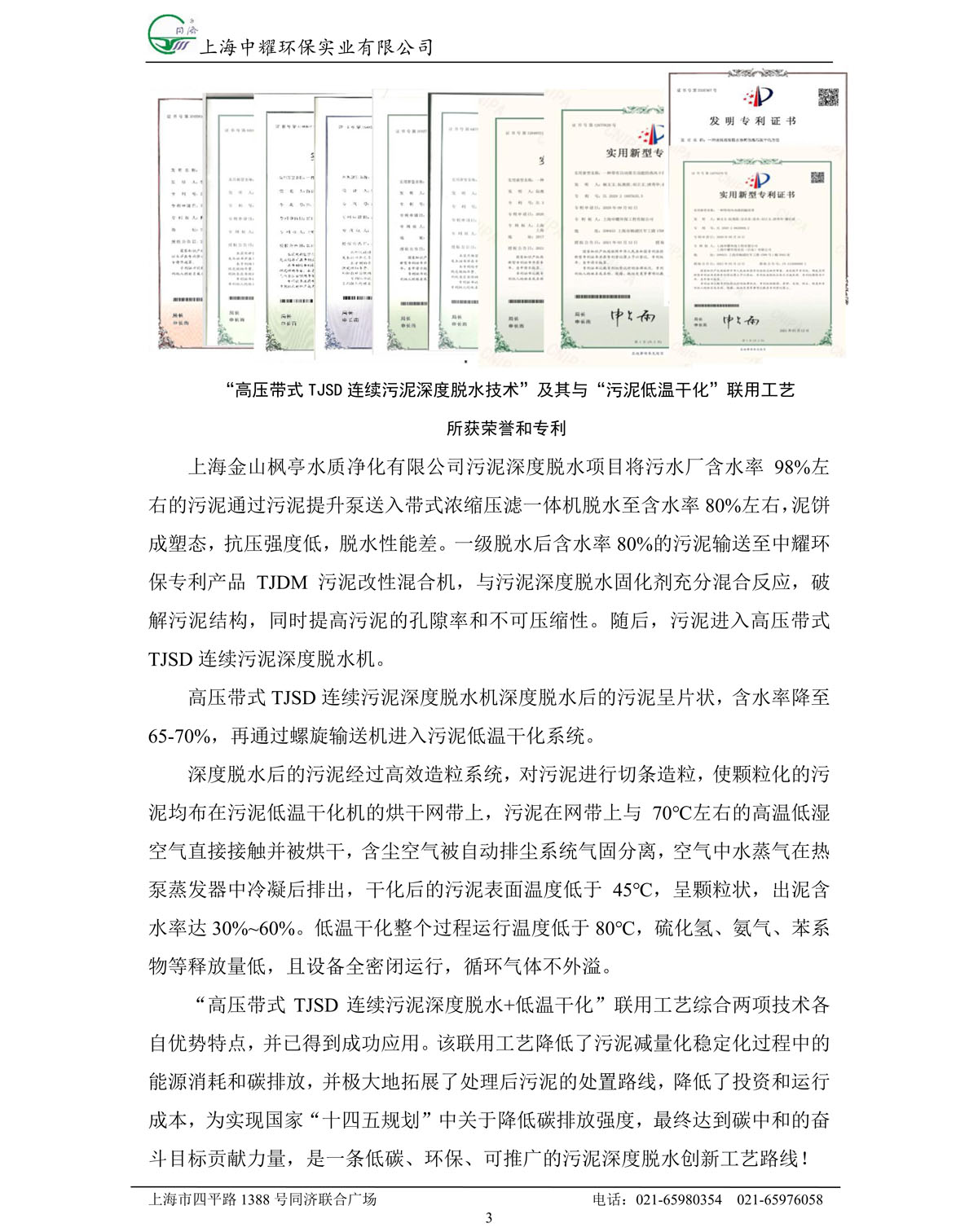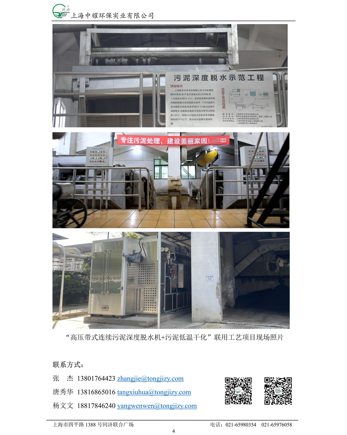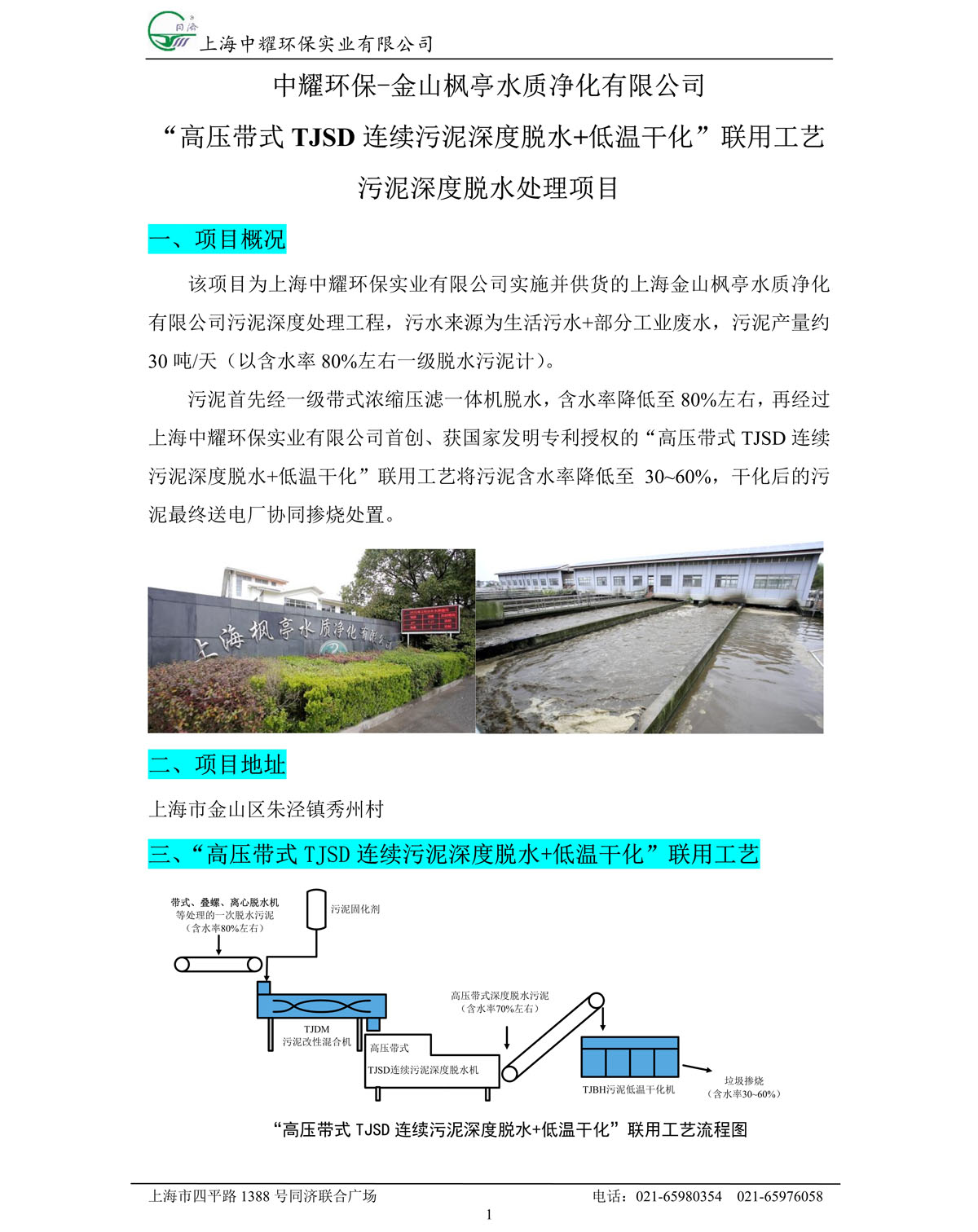【污泥大会参观项目之一】中耀环保-金山枫亭水质净化有限公司“高压带式TJSD 连续污泥深度脱水+低温干化”联用工艺污泥深度脱水处理项目