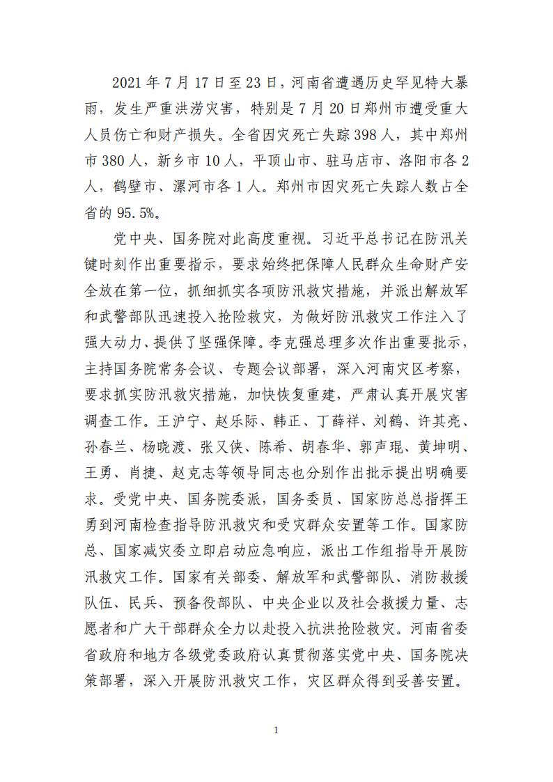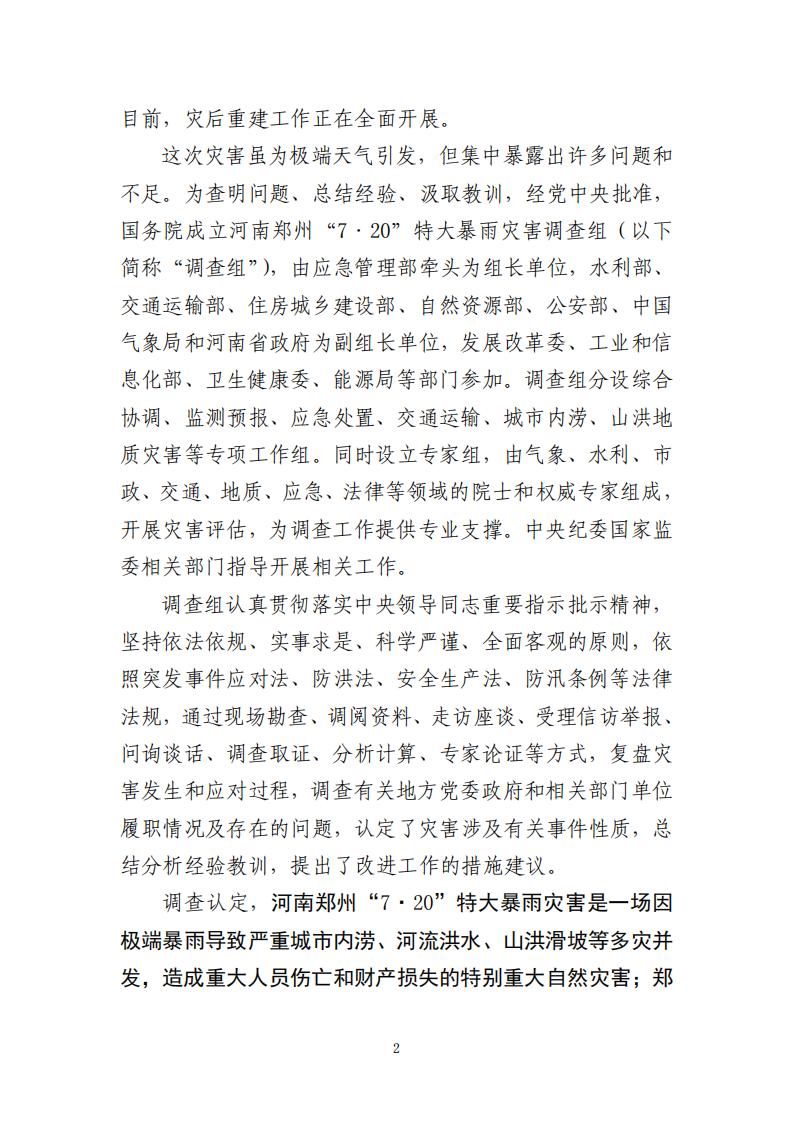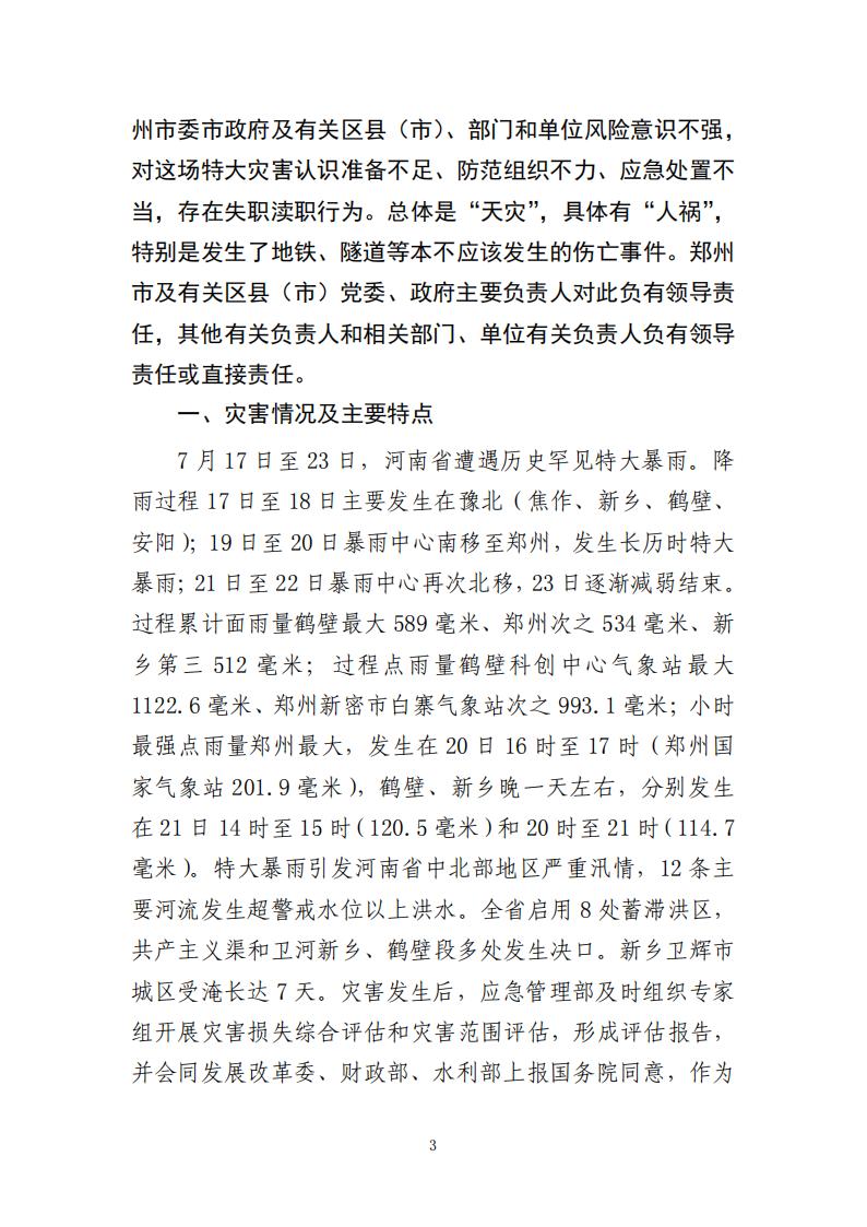 全文 | 河南郑州“7·20”特大暴雨灾害调查报告