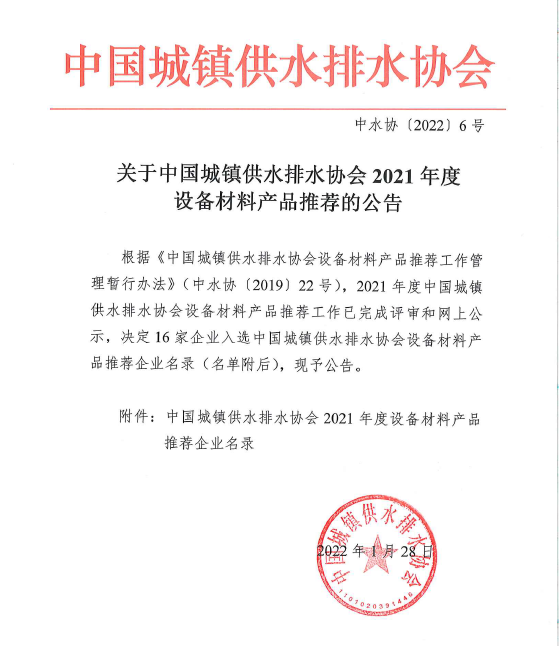 公告丨关于中国城镇供水排水协会2021年度设备材料产品推荐的公告