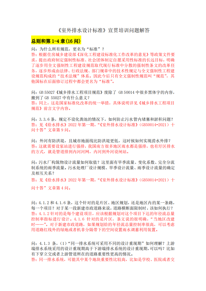 《室外排水设计标准》宣贯培训问题解答