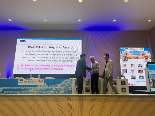 大会还在闭幕式上为 IWA MTSG新星奖、IWA MTSG博士论文奖以及2024年膜法水处理优秀项目奖的获奖者颁奖。IWA MTSG新星奖的获奖者分别为Prof. Yu Yang (China)和Dr. Mohan Qin (U.S.A);IWA MTSG博士论文奖的获奖者分别为Dr. Chuansheng Wang(Singapore)和Dr. Weichen Lin(China);2024年膜法水处理优秀项目奖的获奖者为AsWater Advanced Evirotech Ltd., (Chinese Taipei)。颁奖旨在表彰在膜技术水处理研究方面表现出领导能力、创新能力和发展前景的个人或项目。